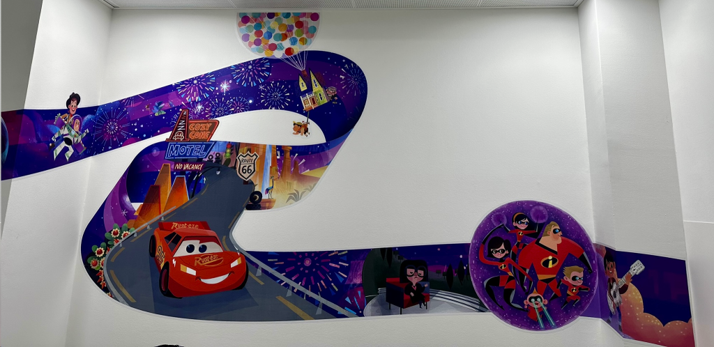 Disney has a long-standing partnership with both hospitals and collaborating to create the best possible hospital experience for children and those closest to them. In addition to murals providing comfort, Disney’s hospital program includes themed get-well certificates and gifts handed out to patients, and complementary Disney+ subscriptions for hospitals, as well as visits from Disney’s beloved characters to provide a familiar touchpoint to patients in an otherwise unfamiliar environment.